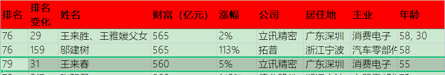 王来春也被称为“代工女王”,在福布斯“2021年度中国杰出商界女性榜”排名第一位。2022年胡润百富榜排名79位,财富560亿元。