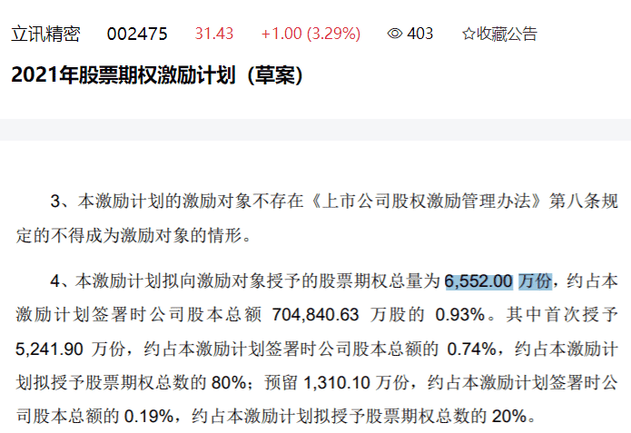 11月13日晚间,立讯精密发布上市以来,最大规模的股票期权激励计划。根据方案(草案),公司拟向3759名激励对象,授予1.72亿份股票期权,行权价格30.35元/股。