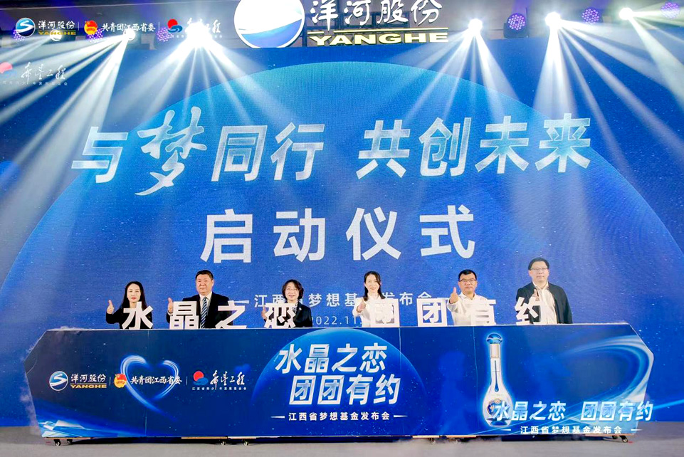 “心系广大青少年,想青少年之所想、急青少年之所急,不断把温暖传递给青年”,这是一场以青年为名的合作,也是青少年公益事业的新起点。活动中,共青团江西省委胡振燕同志和宋志敏等六位嘉宾共同宣布江西省希望工程“洋河股份·梦想基金”的正式启动,还启动了以“水晶之恋 团团有约”为主题的线下交友活动,满足青年交友需求,助力青年成长生活。与此同时,活动通过洋河文创产品募集到的款项全部捐赠于梦想基金会,鼓励当下青年以“梦想”为原动力,描绘精彩人生。
