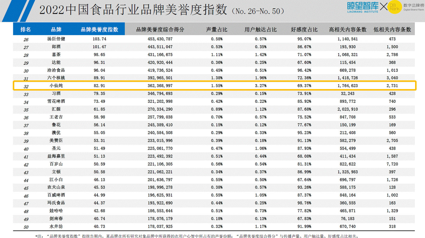 (小仙炖鲜炖燕窝入围《2022食品行业品牌美誉度指数年度报告》)