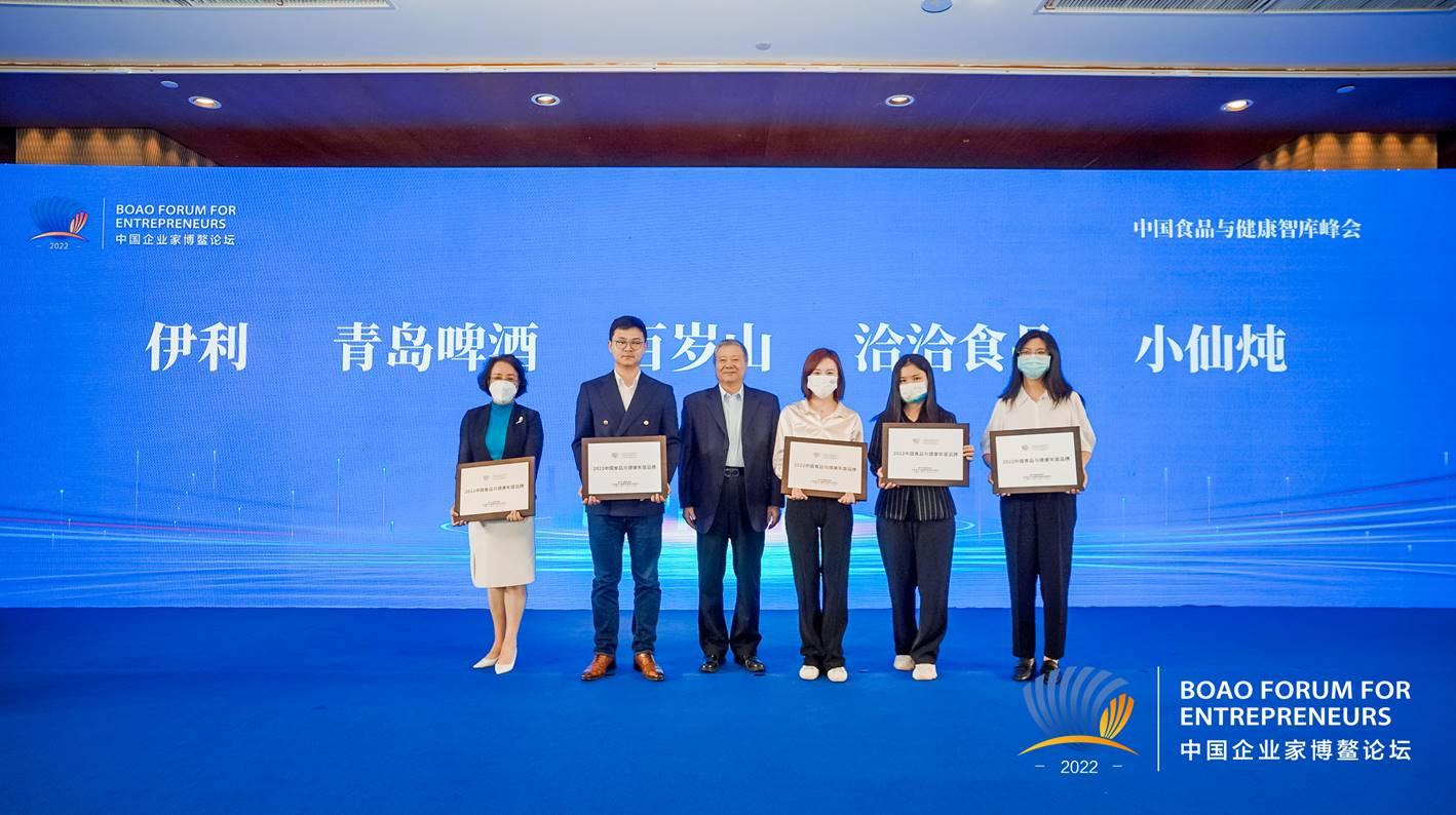 经过行业专家推荐和大数据研发系统的评判,本次峰会还授予5家中国品牌“2022中国食品与健康年度品牌”荣誉称号。它们分别是:伊利、青岛啤酒、百岁山、洽洽食品、小仙炖。