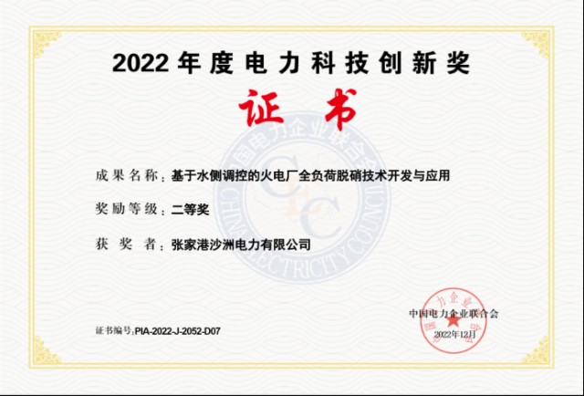 中国财富网讯 近日,永泰能源(600157.SH)旗下张家港沙洲电力有限公司(简称“沙洲电厂”)荣获中国电力企业联合会颁发的“2022年度电力科技创新奖二等奖”荣誉称号,获奖成果类别为“基于水侧调控的火电厂全负荷脱硝技术开发与应用”。
