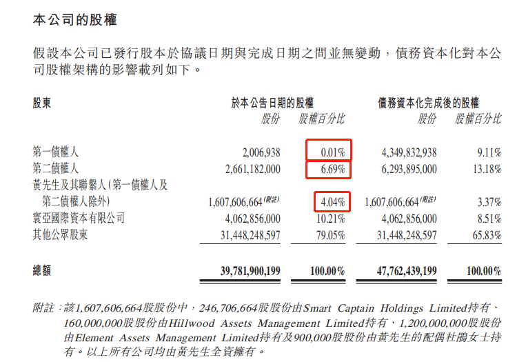 公告称,债转股尚待股东大会以及联交所上市委员会等环节批准。一旦新一轮债转股方案实施后,黄光裕及其关联方(包括Shinning Crown和国美管理)对国美零售的持股比例将从10.74%增至25.66%,而寰亚国际资本的持股比例降至8.51%,其他股东的持股比例降至65.83%。