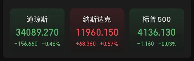 尽管这已是美国通胀连续第7个月下降,但下降速度不及预期,依然打击了市场表现。当日,美股三大指数承压低开,收盘则涨跌不一。截至收盘,道指跌156.66点,跌幅为0.46%;纳指涨68.36点,涨幅为0.57%;标普500指数跌1.16点,跌幅为0.03%。