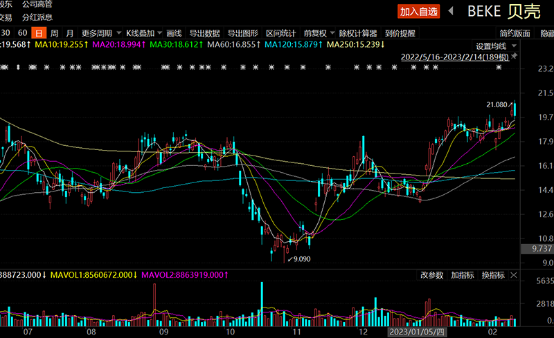 资料显示,贝壳是用于房屋交易和服务的领先集成在线和离线平台,去年11以来伴随着国内房地产行业政策向好,贝壳股价显著反弹。