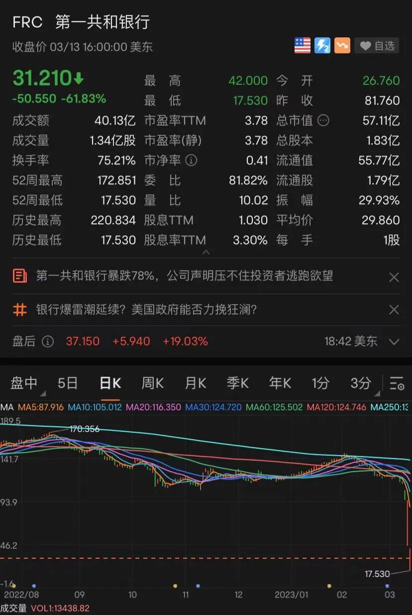 显然,投资者们的目光聚焦在了第一共和银行身上。