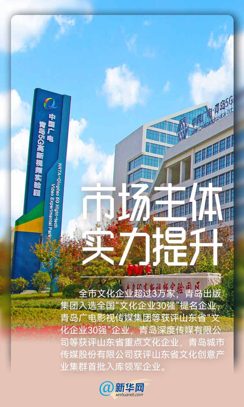 近年来,青岛紧紧围绕国家重大战略,推进实施文化强市战略,以提升城市文化软实力为目标,高度重视发展文化产业,初步构建形成影视文化、音乐演艺、创意设计、数字文旅等齐头并进的发展格局。