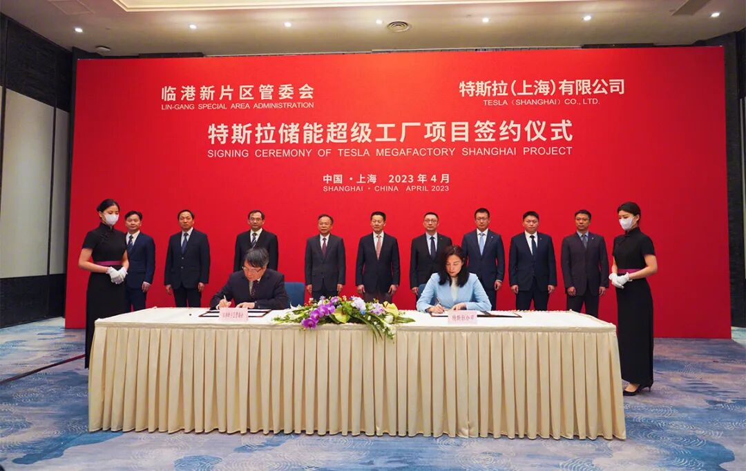 4月9日,特斯拉储能超级工厂项目签约仪式在上海正式举行。上海市委常委、常务副市长吴清,特斯拉公司高级副总裁朱晓彤,上海市委常委、临港新片区党工委书记、管委会主任陈金山,上海市副市长李政出席并共同见证签约仪式。