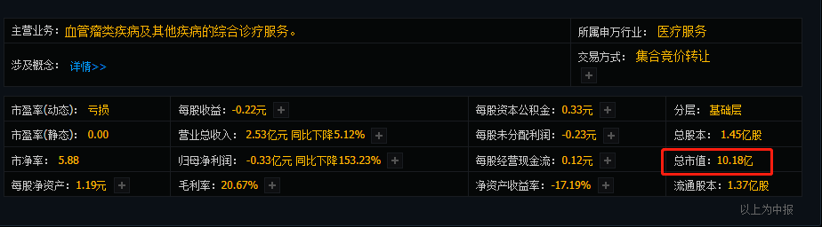 据悉,长峰医院是一所以神经内科、血管瘤、脉管畸形等疾病为诊疗特色的二级综合医院,是北京市医保定点医院。2017年,长峰医院登陆新三板基础层。截至发稿,长峰医院总市值10.18亿元。