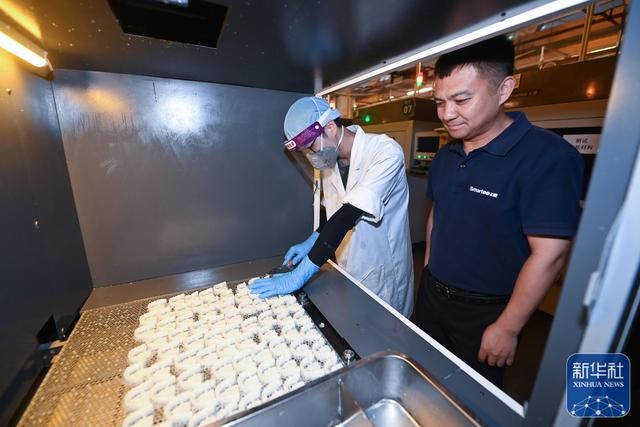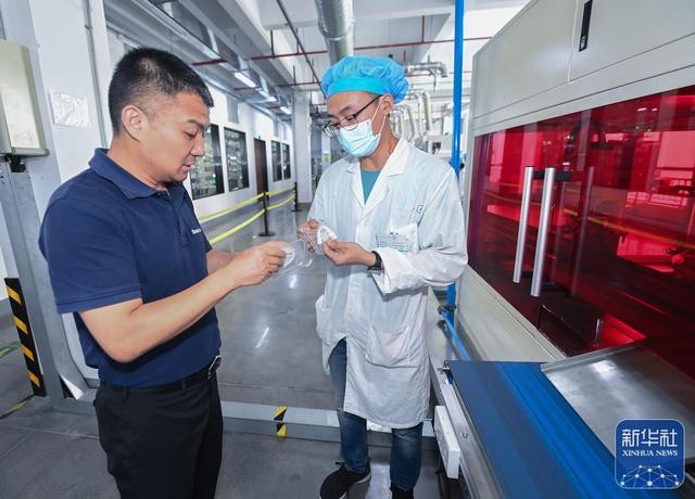 5月31日,浙江正雅齿科股份有限公司董事长姚峻峰(左)在位于嘉兴南湖高新区的公司车间内查看个性化定制式隐形正畸矫治器的生产。姚峻峰是毕业于英国赫尔大学的工商管理硕士,回国后创办了正雅齿科公司。