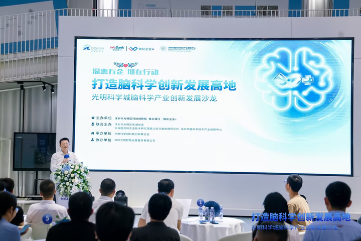 5月31日晚,为全力推动光明区“8+5”产业布局中“脑科学与类脑智能”产业全方位发展,深圳市光明区科技创新局联合微众银行、深圳市脑科学技术产业创新中心共同举办“光明科学城脑科学产业创新发展沙龙”。光明区区委常委、常务副区长姚高科,脑科学领域的众多创新企业、科研专家、创投机构、金融机构齐聚一堂,围绕脑科学产业创新发展实践及光明区脑科学产业优势进行前瞻分享。本场活动亦是微众银行积极响应“深惠万企 圳在行动”的专场企业对接活动,微众银行在光明区政府、光明区科技创新局的指导下,以“政府搭桥、银企对接”创新活动形式为企办实事、解难题,打造政银企合作新模式,为科创企业提供专属综合服务,助力光明区科创型中小微企业成长及重点产业集群高质量发展。