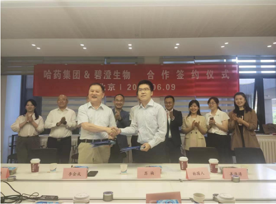 于2023年6月9日上午在清华大学英士楼进行合同签约仪式。哈药集团股份有限公司总裁林国人,副总裁姜海涛,哈药集团生物工程有限公司总经理李会成等与清华大学张翀教授共同出席签约仪式。