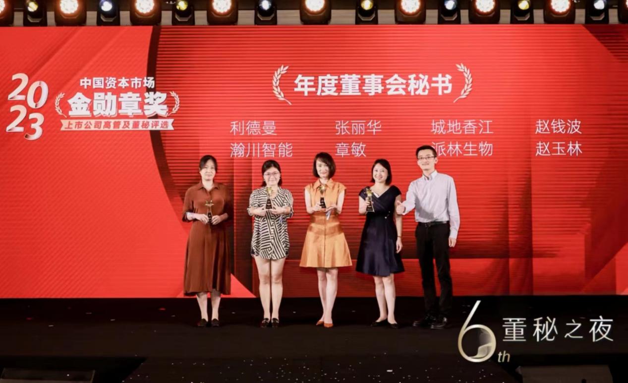 第六届资本论坛于6月8日在海南海口开幕。九方财富CFO兼董事会秘书钱迪作为特邀嘉宾,在董秘之夜活动中为利德曼、城地香江、瀚川智能、派林生物等四家上市公司的董秘颁发金勋章奖。