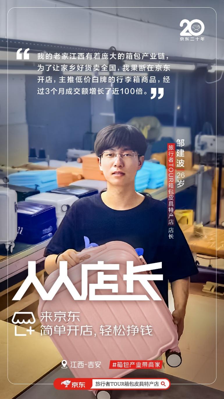 作为“天选电商人”,江西小伙儿邹建波在箱包行业摸爬滚打多年,26岁的年纪已是电商“老把式”。一路走来他越挫越勇,最终蹚出了一条背靠江西箱包产业优势,前依京东小店的箱包销售新路子。