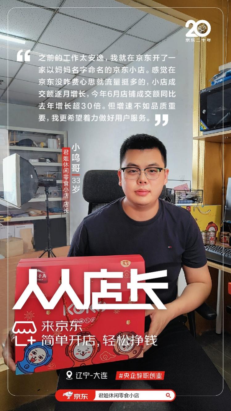 从令人艳羡的央企离职后,在上学时期曾开过网店的小鸣哥,凭借着之前的开店经验,又一头扎进了曾经的老本行,开了一家以妈妈名字命名的京东小店——君姐休闲零食小店。