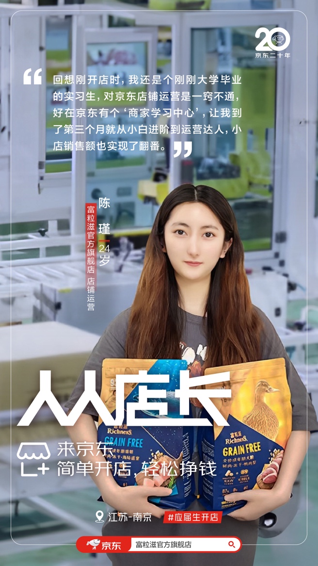 大学刚毕业的陈瑾,在公司启动筹备京东小店时,她毛遂自荐,开启了一路“打怪升级”的开店之旅。在开店初期,前两个月销售情况与陈瑾的预期存在一定差距。到了第三个月,陈瑾在京东“商家成长中心”领取了5300元新商广告金,进行推广后使店铺流量显著增长,销售额也实现了翻番。