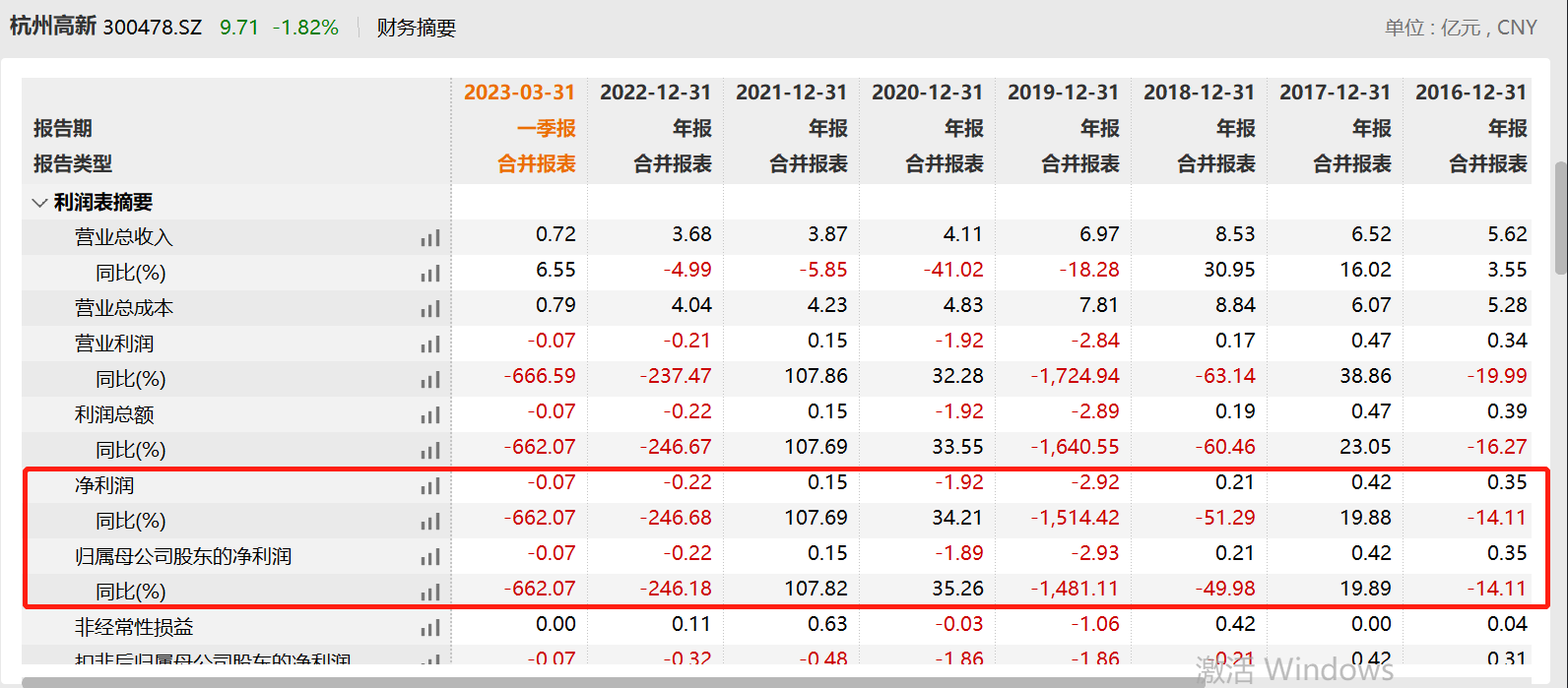 截至2023年一季度,杭州高新实现营业收入7154.23万元,同比增长6.55%,归母净利润为亏损711.23万元,同比下降662.07%。