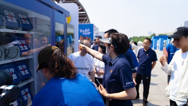 在活动现场,国家反诈中心的青年党员、互联网企业及高校的反诈青年志愿者组成60余支宣传队伍,通过设置反诈宣传展位、徒步小方阵宣讲、法律知识有奖问答等方式,为群众介绍反诈常识,进行反电信网络诈骗法条文解读,解密最新诈骗手法,介绍"国家反诈中心APP"使用方法,面对面互动参与的宣传方式,得到活动现场群众的广泛认可和欢迎。