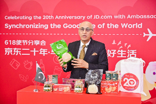 巴基斯坦驻华大使莫因·哈克高度肯定了京东国家馆在促进中巴间贸易交流方面的积极作用。今年大使邀请京东团队亲自到巴基斯坦发掘好物,将巴斯马蒂大米、精品芒果和更多农特产送上中国消费者的餐桌。