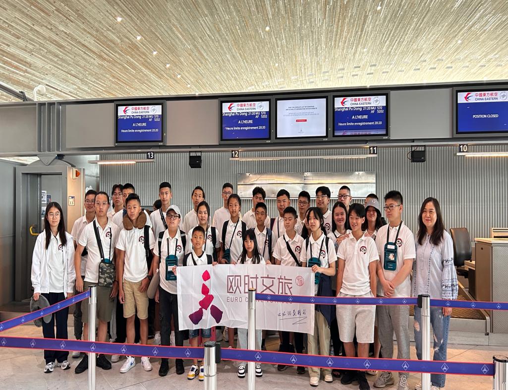 夏令营全体成员在巴黎戴高乐国际机场集结出发。