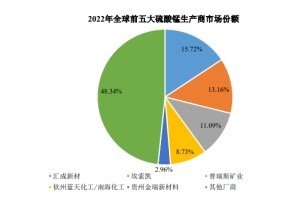 根据上海有色网(SMM)2021年及2022年国内电池级硫酸锰总产量及主要电池级硫酸锰生产企业产量数据,2021年及2022年,埃索凯电池级硫酸锰产量分别为2.58万吨、5.80万吨,占国内电池级硫酸锰总产量的比例分别为11.07%及20.17%,均位居行业第二。