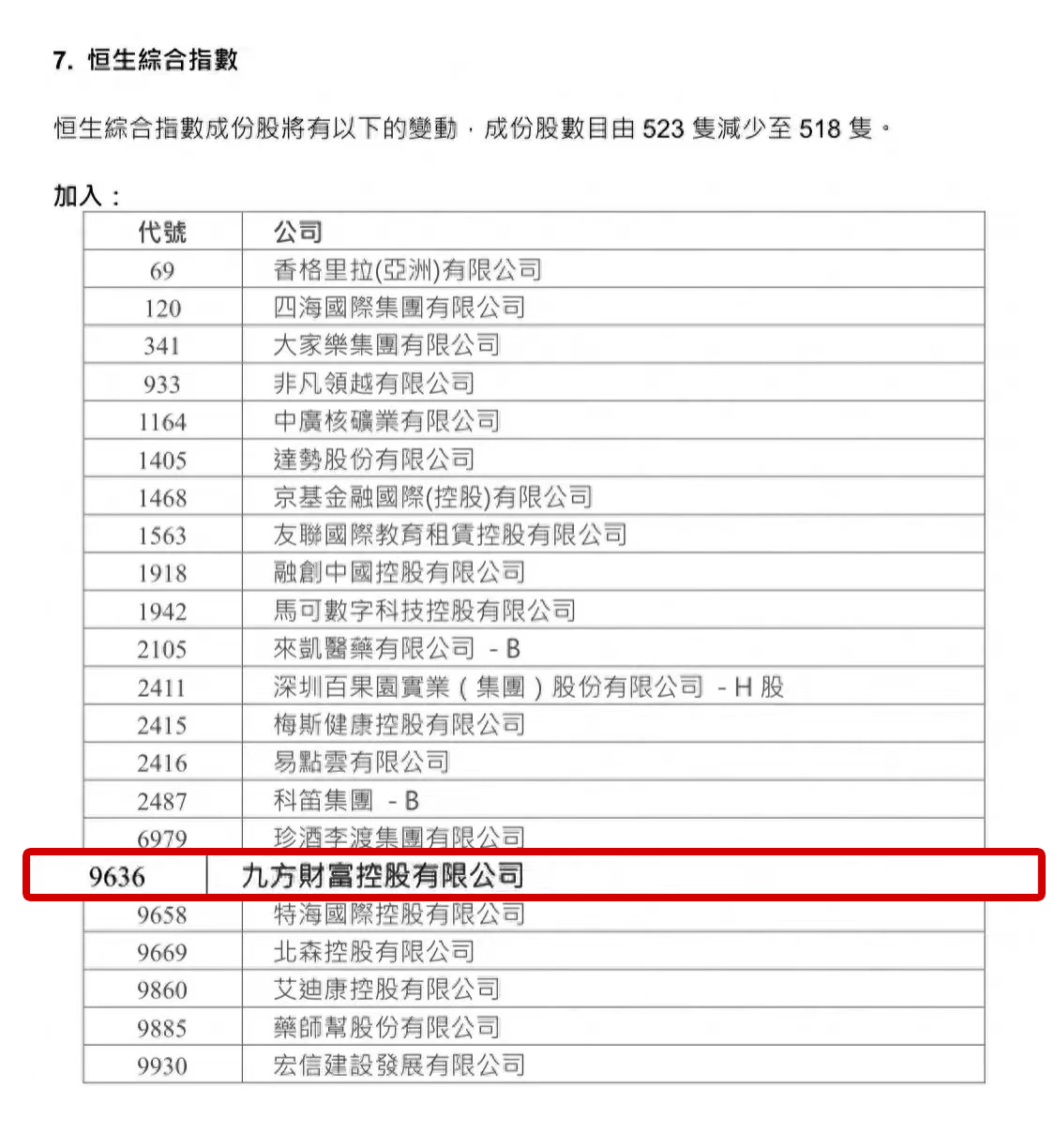 8月18日,恒生指数有限公司公布了截至2023年6月30日的恒生指数系列季检结果,九方财富(09636.HK)在市值、流动性、基本面等方面均符合恒生综合指数成分股纳入条件,即日起纳入“港股通”名单,并预计于2023年9月4日正式生效。