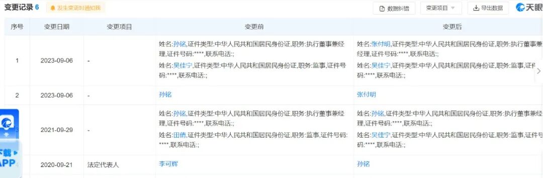 无独有偶,2023年9月6日,大唐盛世(青岛)家族办公室有限公司法人代表从“孙铭”变更为“张付明”,执行董事兼经理也从“孙铭”变更为“张付明”。
