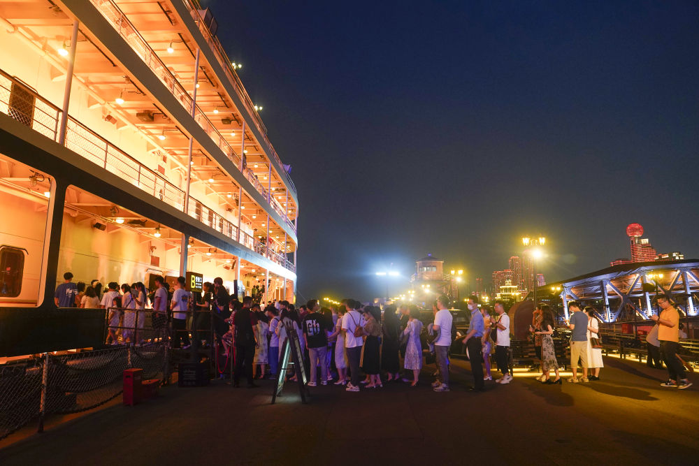 为了一场期待已久的剧目奔赴一座城。假期期间,重庆的贾女士和家人到武汉旅游,特地提前一周购买了沉浸式实景演出《知音号》的船票。这是一艘“武汉最会讲故事的船”——戴礼帽的绅士、穿旗袍的淑女、擦皮鞋的小伙、卖报纸的小妹……当熟悉的音乐响起,所有人都融入剧中,穿越回20世纪30年代的大武汉。