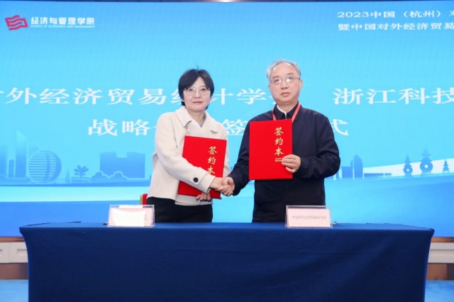 同时,中国对外经济贸易统计学会与浙江科技学院、浙江科技学院经济与管理学院同环球慧思(北京)数据技术有限公司和《国际商务财会》杂志社分别签订战略合作协议,未来几家合作单位将围绕理论研究、智库服务、人才培养、品牌宣传、大会活动等展开深度合作,探索建立政产学研于一体的外贸高质量发展合作交流新模式。