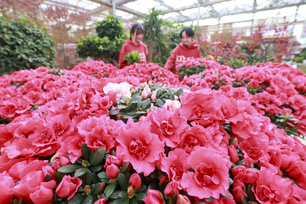 2024年2月8日,市民在河北省唐山市丰南区一处花卉市场选购鲜花。新华社发(李秀清 摄)