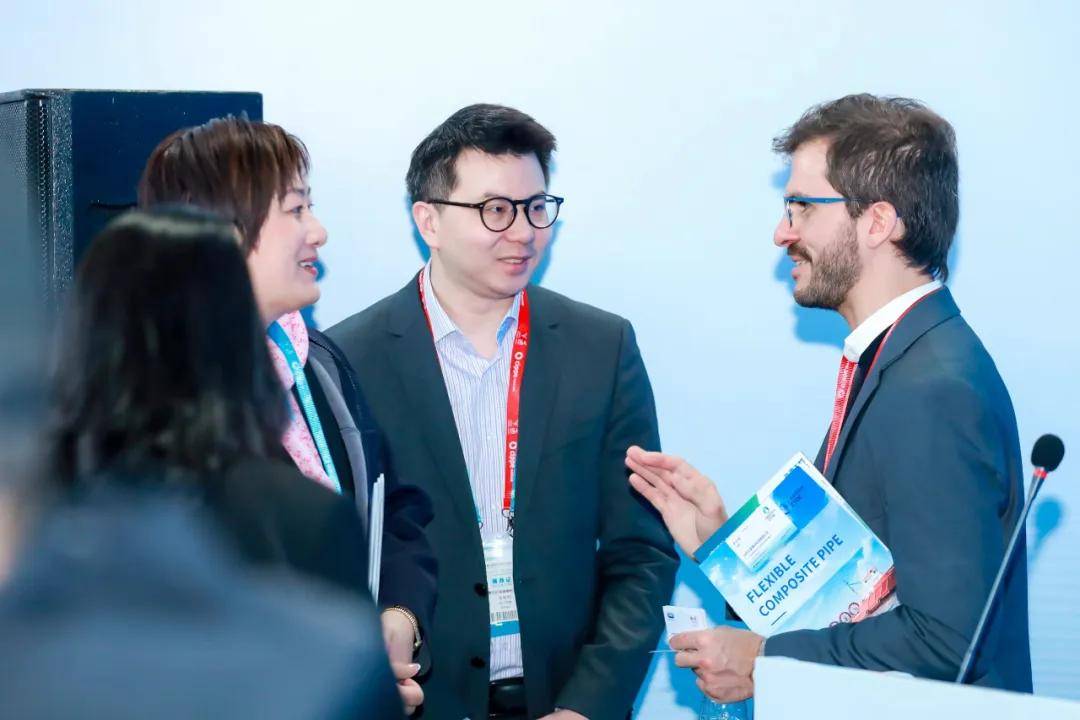 据统计,现场展示的产品数量超万件,代表着当前油气行业创新技术的发展方向和领先水平。此外,现场参展企业还举办多场发布活动,现场推介多款全球首台套、行业首创或首展的创新技术和产品。如杰瑞集团发布的全球首台套、行业首创——杰瑞分布式危废处理设备、新型涡轮压裂车;山东未来机器人现场展示全国产深海3500米悬浮作业机器人和深海铺缆机器人产品;中车艾森迪现场展示工业级水下机器人产品;倍豪船舶现场展示导管式全回转推进器、水下安装型全回转推进器、对转式全回转推进器等多款船舶推进器;青岛昌辉海洋现场展示海陆钻井自动化作业机器人;潍柴现场展示16M33电驱钻机机组等。这些海洋工程智能“智”造装备立足国家所需、产业所趋、转型所急,通过工艺流程的改进、技术改造以及绿色产品创新,推动了海洋工程装备制造产业链供应链优化升级,坚定不移地抢占未来产业发展的制高点,释放更多新质生产力的活跃因子。