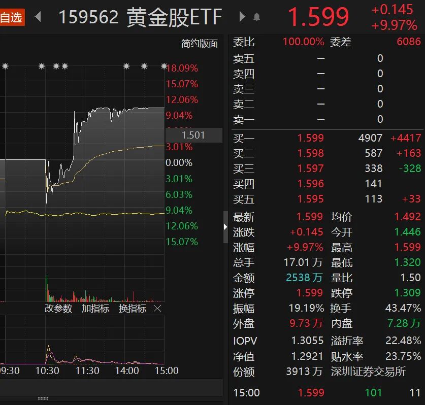 华夏黄金股ETF就是典型的例子。4月2日,华夏黄金股ETF涨停,这是该ETF连续第二天涨停,最近3个交易日涨幅高达31.17%。