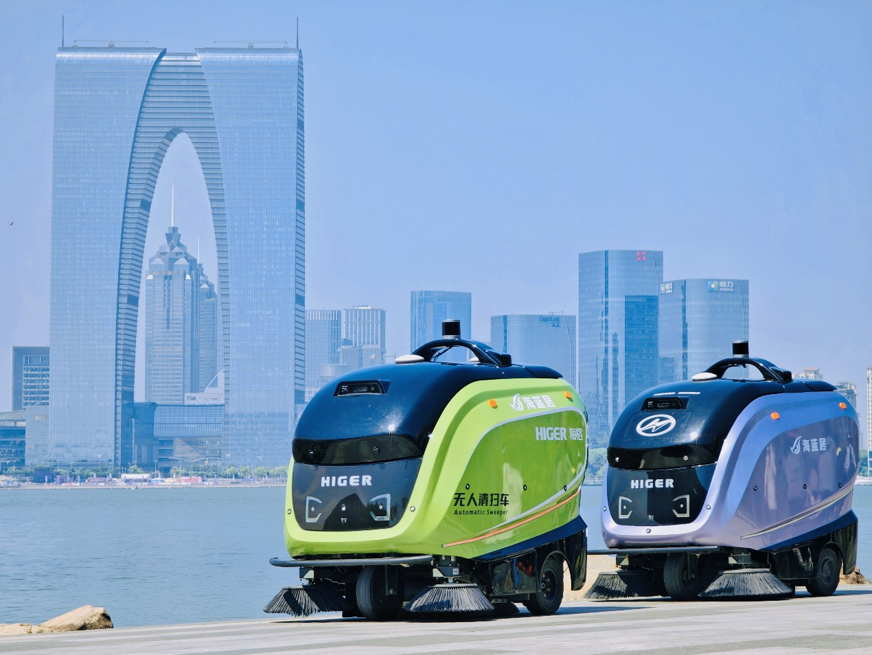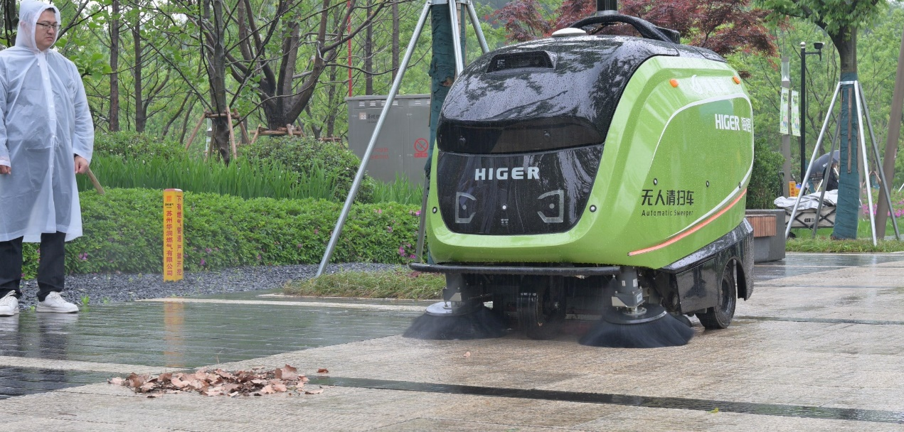 值得一提的是,在刚刚过去的“五一”小长假,苏州金龙投入2辆无人清扫车于金鸡湖畔开展示范运营,两台无人清扫车每天工作5次,5天总计作业里程50公里,清扫面积达65000平方米。