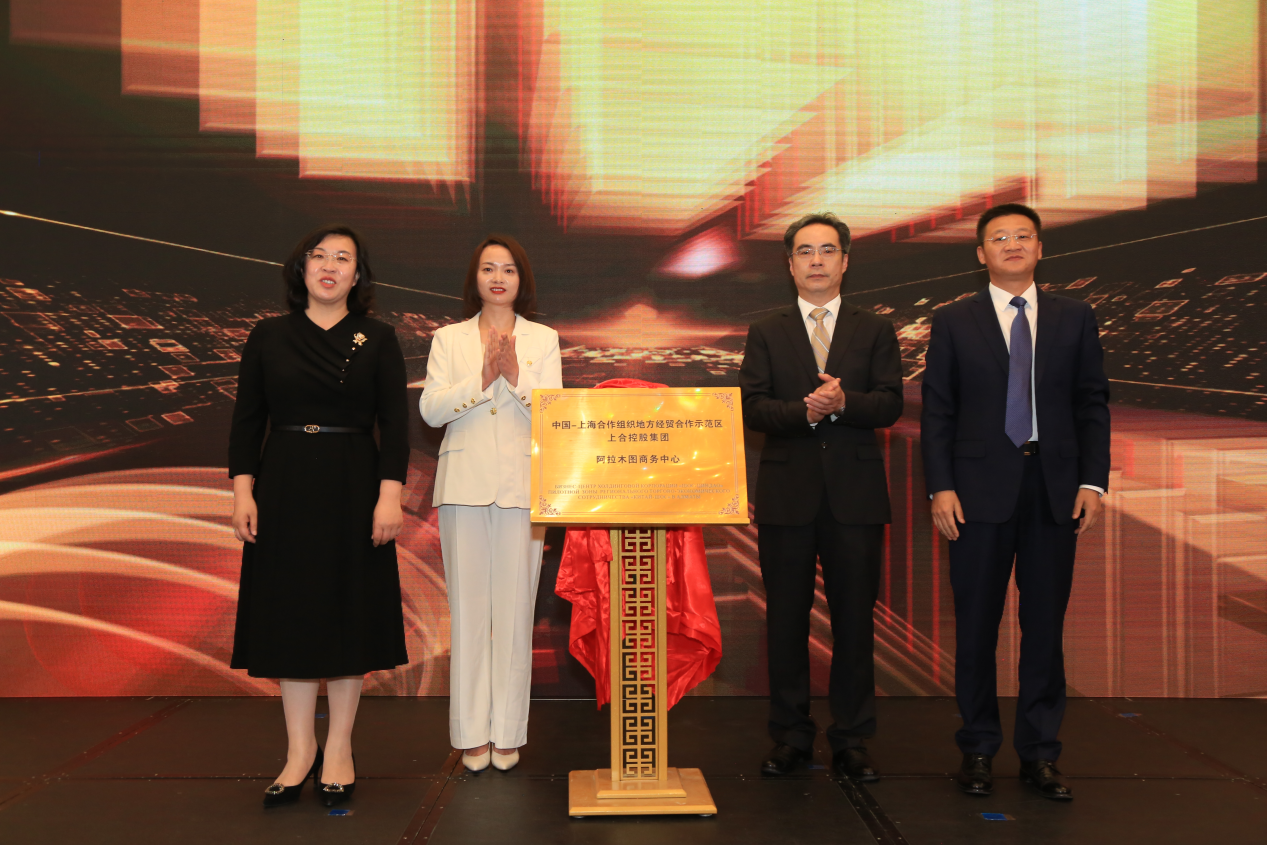 图为上合示范区阿拉木图商务中心暨上合控股阿拉木图公司揭牌仪式现场