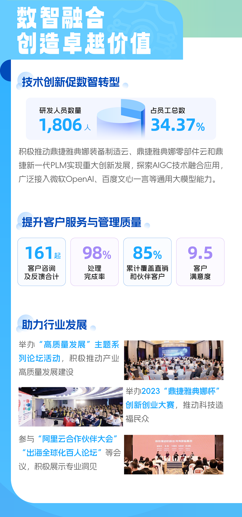 自成立以来,鼎捷持续聚焦客户核心业务场景和管理需求,利用5G、PaaS、大数据、AI人工智能等新兴技术,以“数智驱动”为核心,创新优化产品方案与价值交付方法,致力提升客户经营效益和数字化转型能力,以数字价值赋能企业高质量可持续发展。