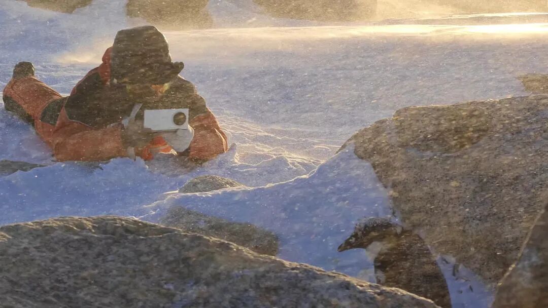 点评:画面生动和谐,充满趣味,雪花飞舞突出极地元素,低角度呈现美丽光影效果。