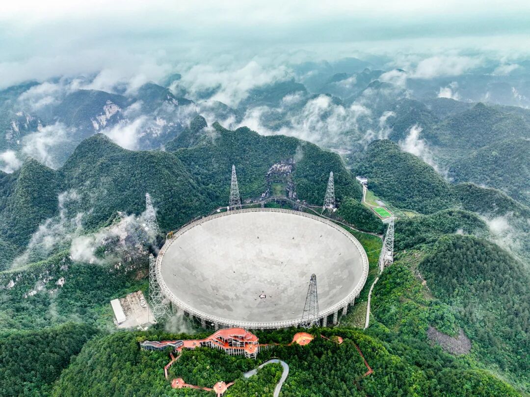 2023年6月22日拍摄的位于贵州平塘县的“中国天眼”全景,目前“中国天眼”是全球最大且最灵敏的射电望远镜。