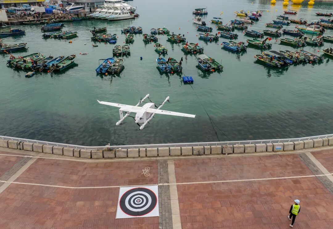 2024年2月5日,在深圳大鹏新区南澳街道,丰翼无人机搭载着海鲜起飞,前往龙岗区的起降点。