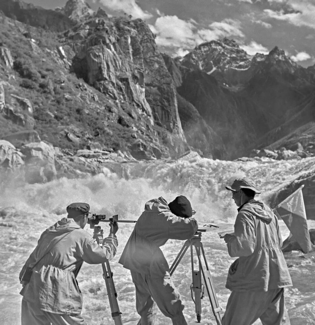 1973年至1976年,中国科学院青藏高原综合科学考察队对“世界屋脊”青藏高原进行了多学科综合考察。图为科考队员测量雅鲁藏布江上的加查瀑布。