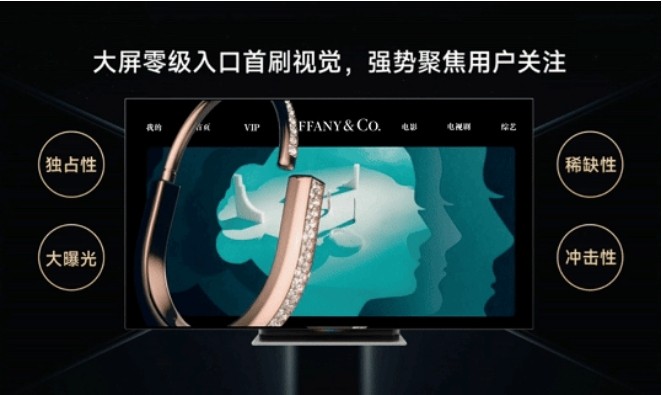 小米为Tiffany打造的3D创意开机广告是一个很好的案例。当用户一打开小米电视,扑面而来的就是Tiffany产品的3D动画,零帧起手给人第一眼的视觉冲击,这种创意表达,让产品质感和品牌调性迅速就被记住了。数据也证明,这样具有独占性、大曝光、稀缺性、冲击性的开机广告要比贴片广告更具优势,其认知触动力和美誉度触动力分别是大屏贴片广告的3.13倍和3.75倍。