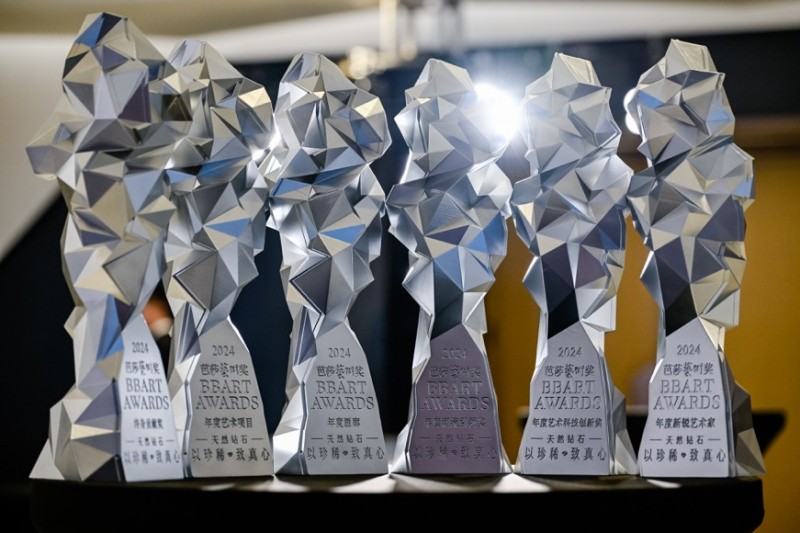 值得一提的是,2024芭莎艺术奖奖杯由现代雕塑艺术领军人物隋建国倾力创作,以光学棱镜为灵感,融入天然钻石的光辉寓意。每一个切面都映射着艺术家独特的精神光芒,钻石的棱角与光的折射相互交织,犹如灵动的太湖石,将艺术家们的光辉通过折射、共振,汇聚成一个光之网络。这座独特的奖杯不仅是一件艺术品,更是一座连接过去与未来的精神丰碑,象征着中国当代艺术的蓬勃生命力。