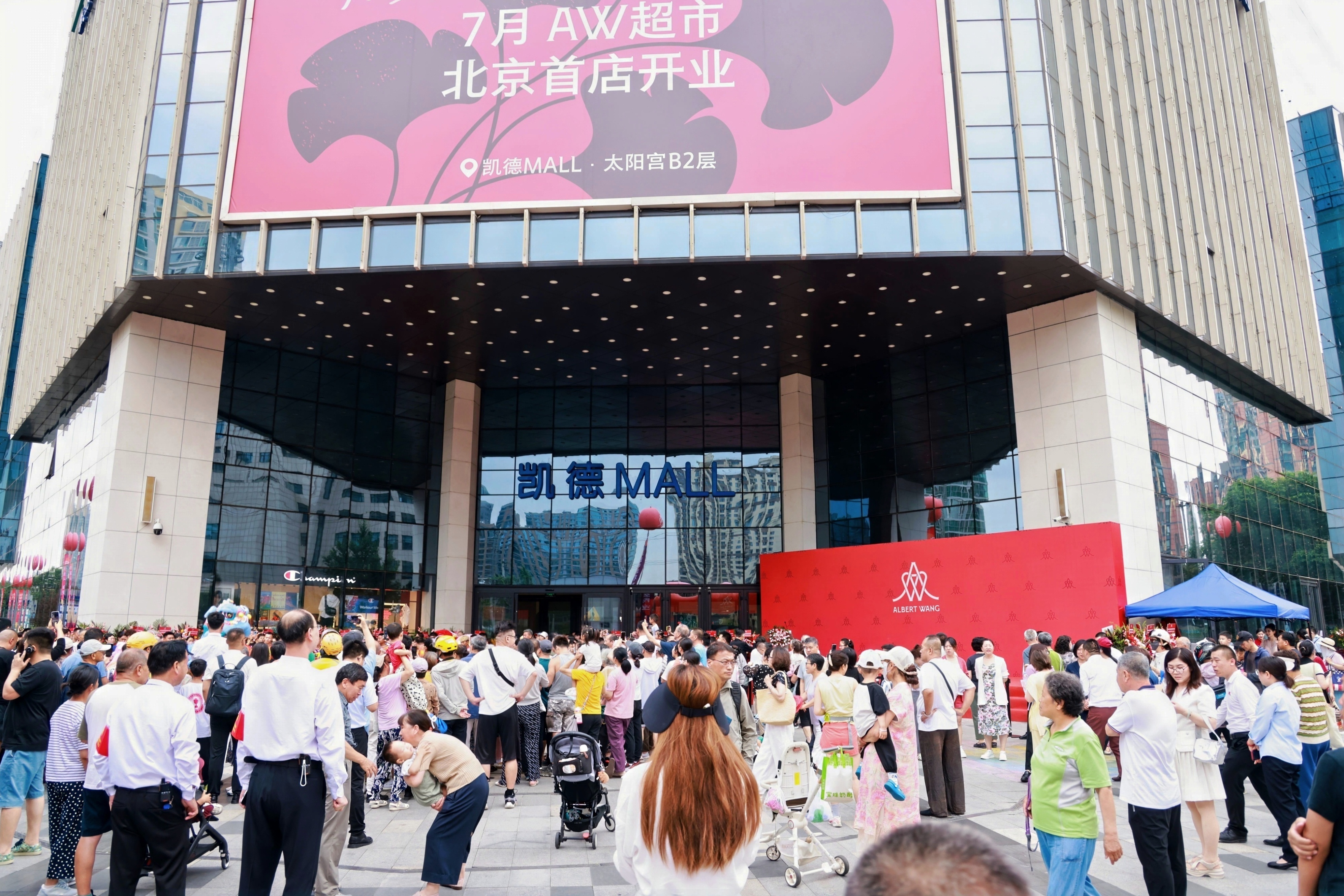 7 月 8 日清晨,北京太阳宫凯德 MALL 尚未开启日常营业,门口已聚集起摩肩接踵的人群。这场由全球新锐超市品牌 Albert Wang(简称 AW)全球首秀引发的热潮,让工作日的商圈提前进入喧嚣。