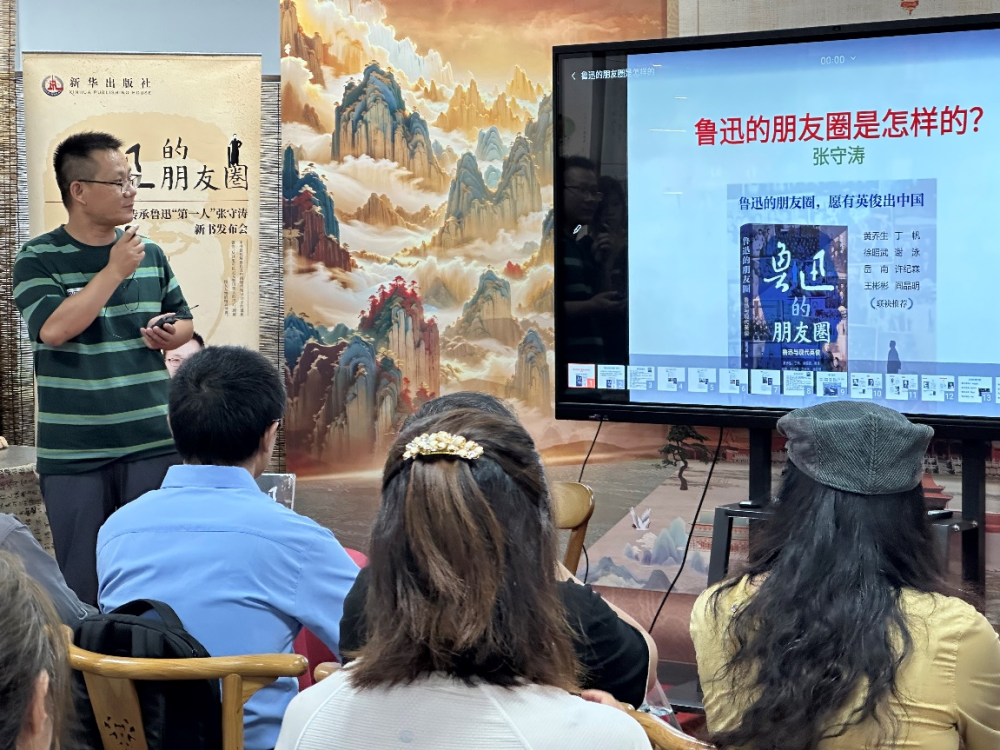 作者张守涛是近年出版界活跃的青年学者、文史作家,已出版有关鲁迅著作三部,在报刊和自媒体持续发表有关鲁迅的文章、视频,积极研究弘扬传承鲁迅作品及其思想。在分享会现场,张守涛以“鲁迅的朋友圈是怎样的”为主题,分享了本书的创作背景和心得。他通过鲁迅先生对现当代知识分子的“毒舌”与“好评”,向读者介绍了鲁迅先生的生平与交际情况,揭示了鲁迅先生热心文化、关心青年、推动社会进步的面相。张立敏研究员介绍了该书的读后感和作者的创作情况,认为在当下重读鲁迅仍有积极的现实意义。