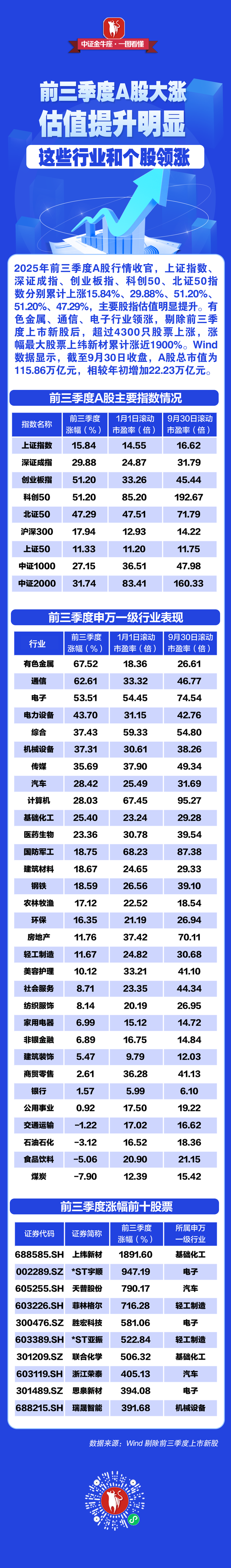 【一图看懂】前三季度A股估值显著提升,这些个股大涨