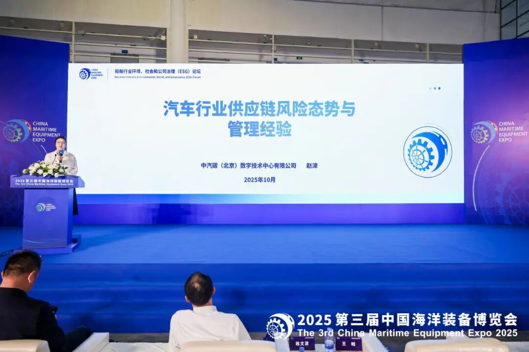 在主旨演讲环节,中国船舶集团有限公司第七一四研究所军民融合与国防动员发展研究中心主任李响系统分析了船舶行业ESG实践与发展路径,指出目前船舶行业ESG管理有着绿色科技市场、运营效率提升、绿色金融市场准入三大增长空间,需要战略升维,治理先行,生态协同,透明管理,共同探索未来发展路径。数字化与绿色化深度融合是未来竞争焦点。中汽碳(北京)数字技术中心有限公司企业ESG治理主管赵津分享了汽车行业供应链风险态势与管理经验,建议船舶企业通过建立协同机制、统一标准、共享信息与联合培训,系统化地构建跨行业的供应链ESG协同治理体系,以提升管理效率、降低合规风险并创造长期价值。