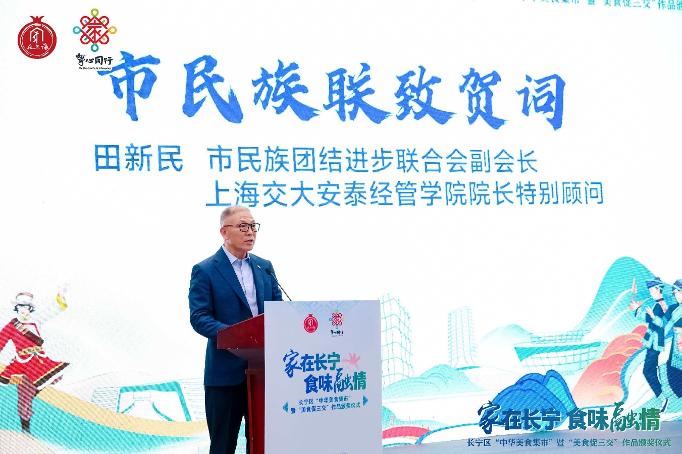 上海市民族团结进步联合会副会长田新民提到,“中华美食集市”是“构筑中华民族共有精神家园”理念的延续,长宁区民族联始终是各族同胞的“连心桥”。他表示,上海正全面推进“家在上海”民族工作品牌建设,长宁区也正加快建设具有世界影响力的国际精品城区。以美食为媒介,让各族群众在烟火气中感受“中华民族共同体”的温暖,在共享美味中体会“家在上海”的归属感。
