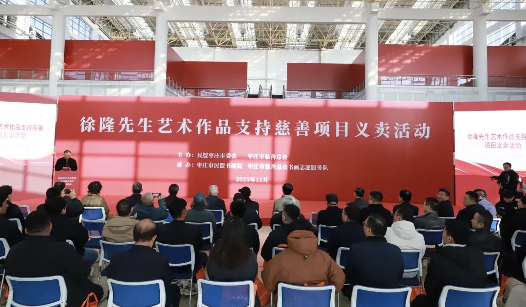 枣庄市政协副主席曹力在讲话中表示,徐隆先生的捐赠之举,体现了“艺术服务人民”的高尚情怀,展现了文艺工作者的社会担当。他强调,本次义卖所得将全部用于枣庄市助老、助孤、助学、助医、助残等慈善项目,这些项目贴近民生需求,是实实在在的“民心工程”与“暖心工程”。