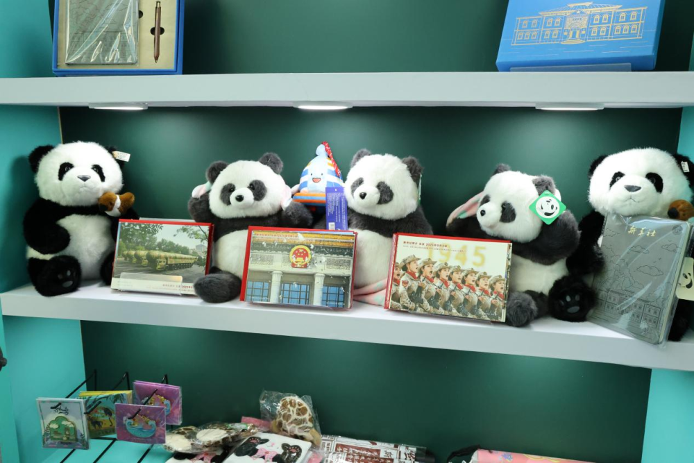 新华出版社携2025全球熊猫伙伴大会纪念版丝巾、《当萌兰遇到花花》纪念画册等熊猫系列文创亮相大会市集。