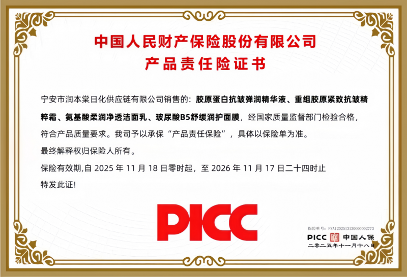 牡丹江宁安市润本棠日化供应链有限公司近日与中国人民财产保险股份有限公司正式确立战略合作伙伴关系。根据合作协议,中国人保为润本棠旗下全线产品提供总额200万元的产品责任险保障,并颁发承保证书。