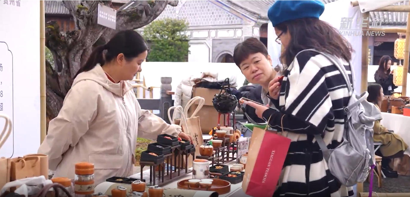 新华社客户端昆明11月27日电 在2025非遗品牌推广周期间,以“非遗好物·国潮焕新”为主题的非遗品牌展示展销活动将会场搬进古色古香的园林景区,为游客提供非物质文化遗产的沉浸体验。
